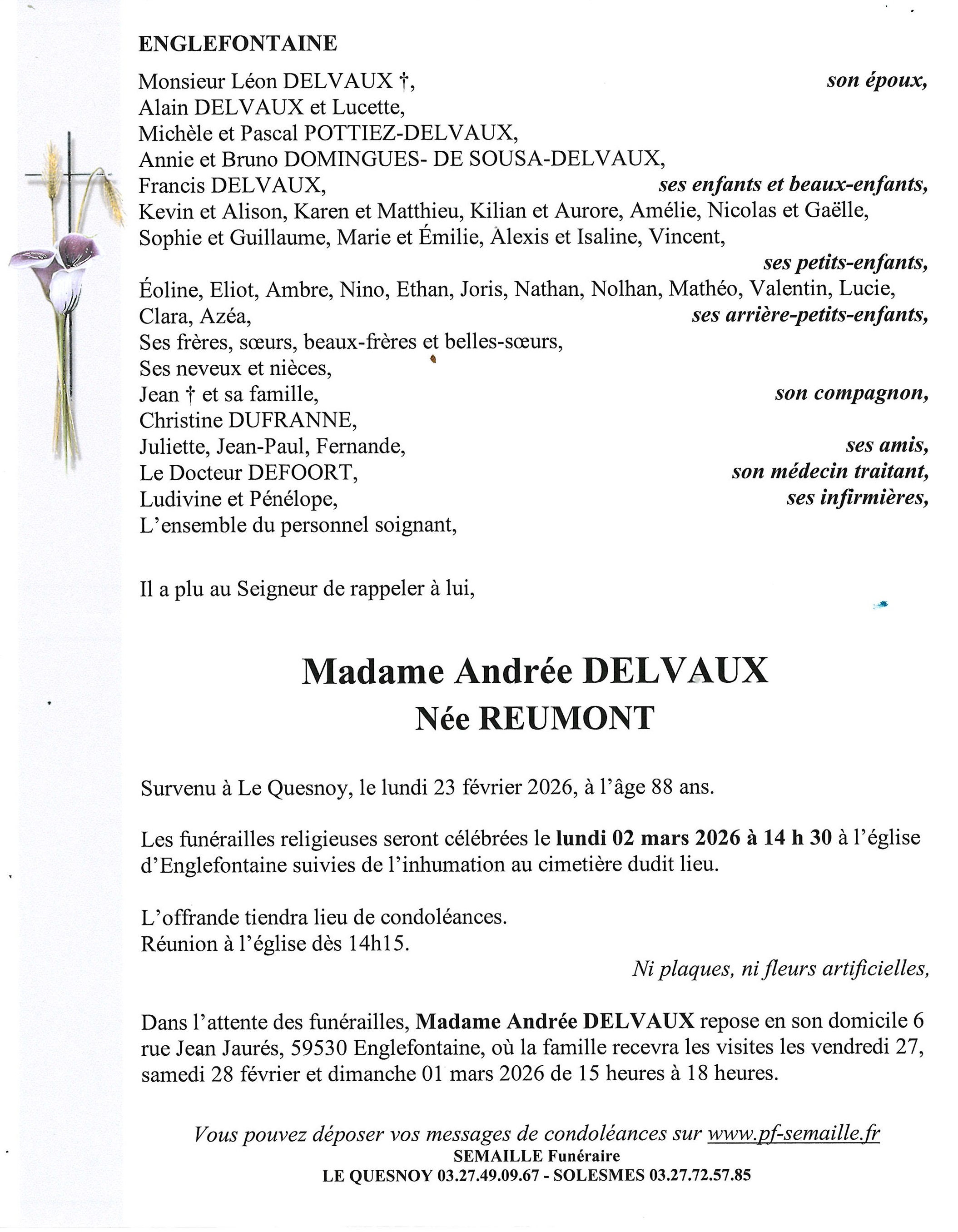 Avis de décès de Madame Andrée DELVAUX née REUMONT