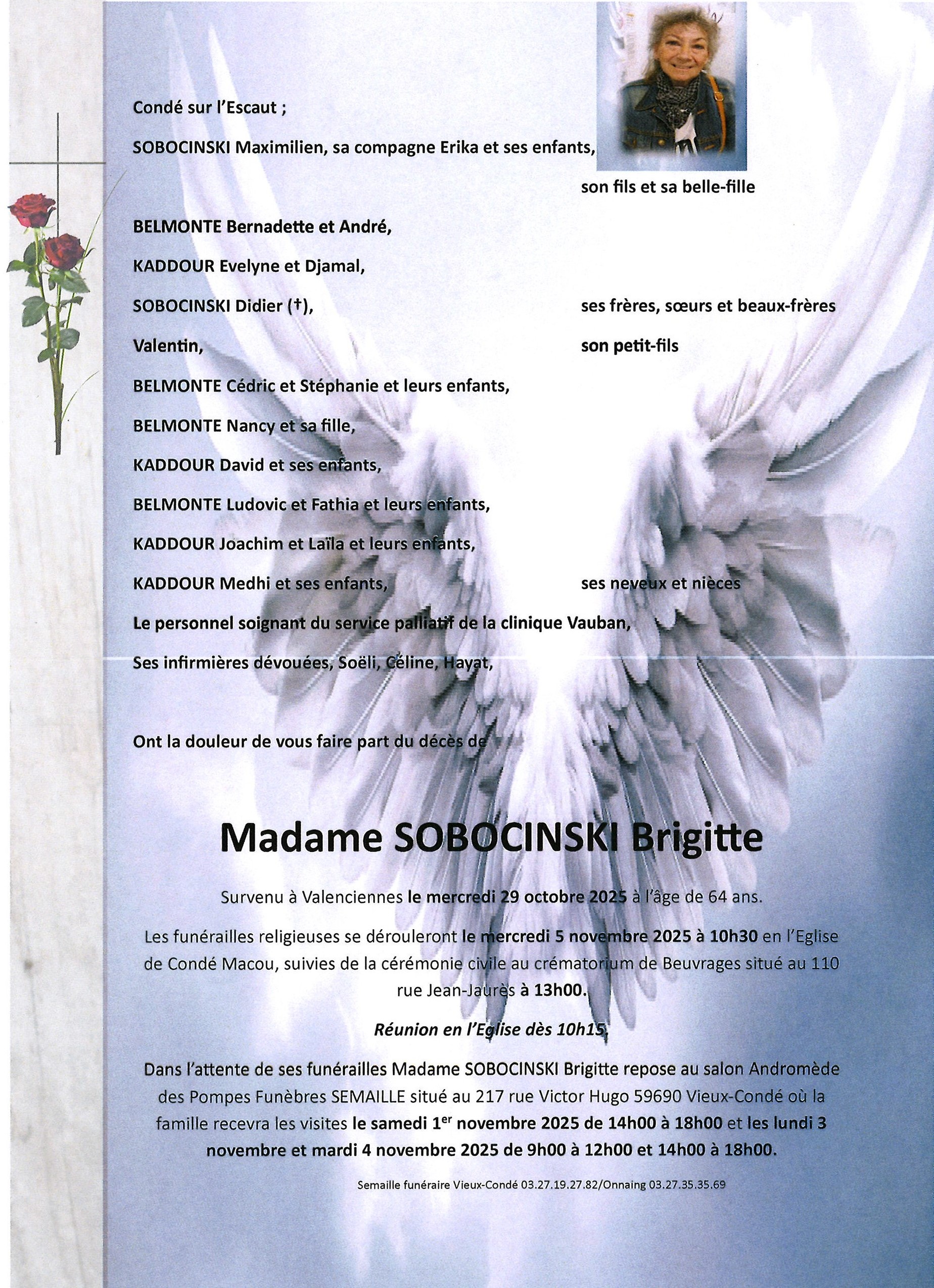 Avis de décès de Madame Brigitte SOBOCINSKI née SOBOCINSKI