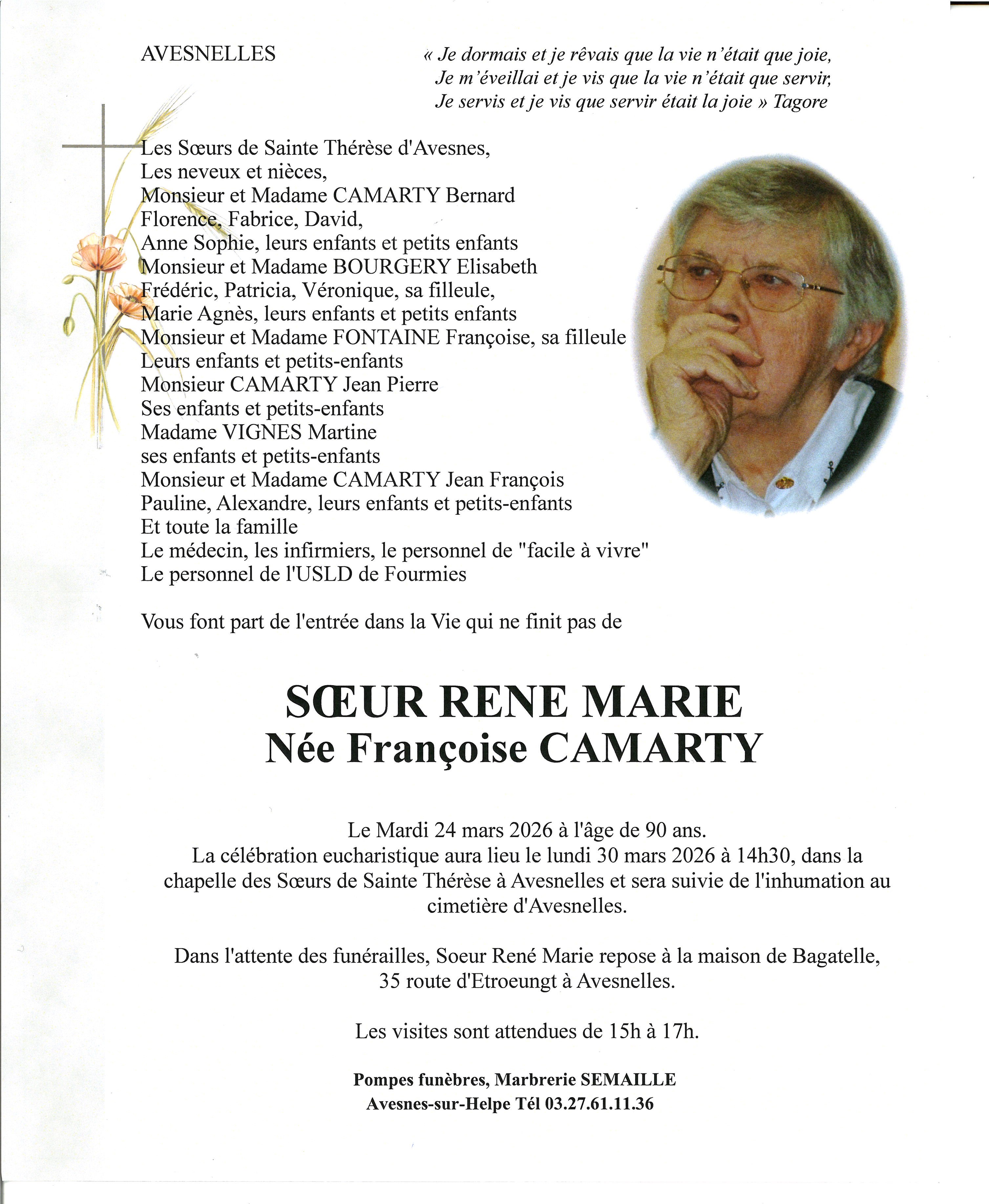 Avis de décès de Madame Françoise CAMARTY