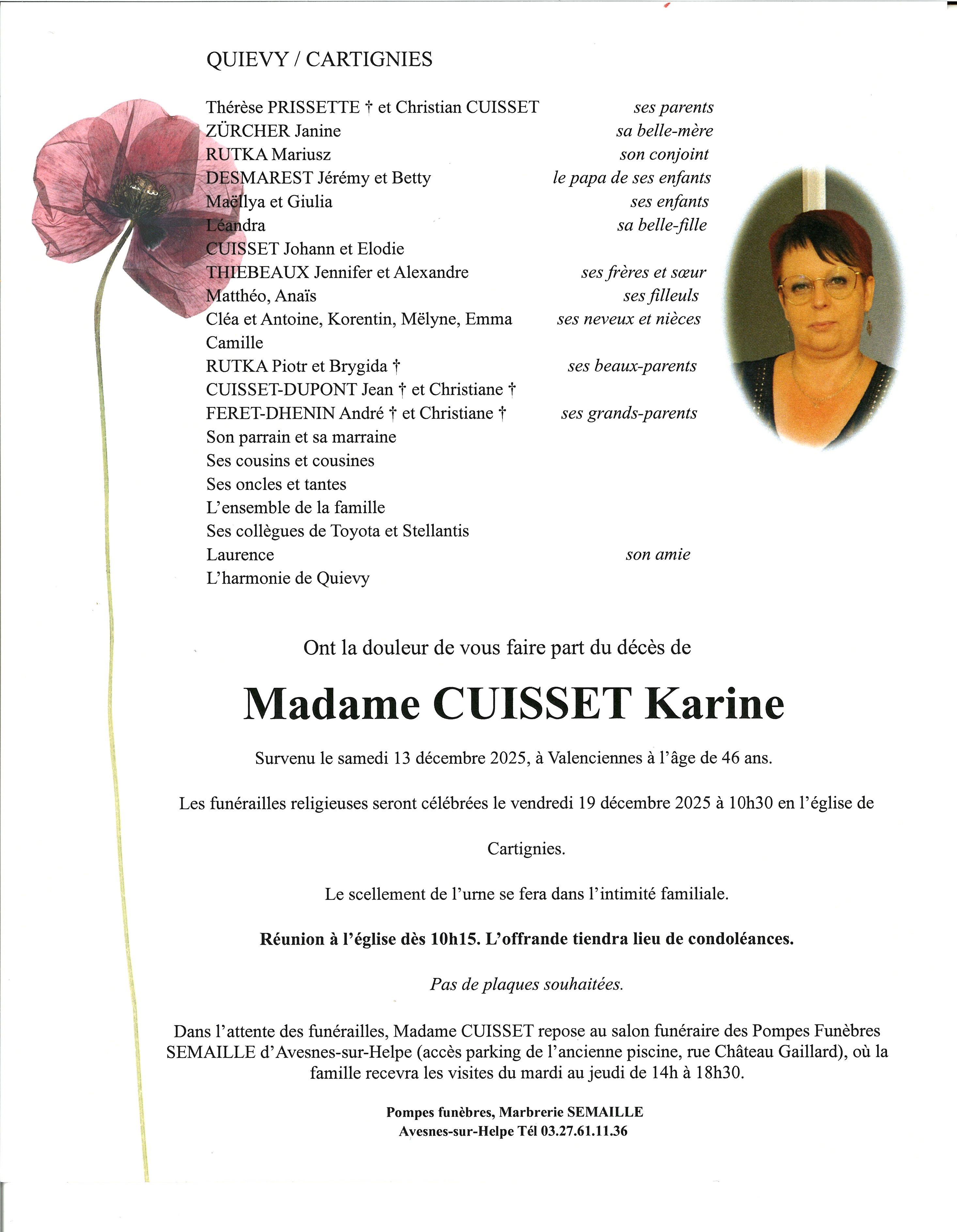 Avis de décès de Madame Karine DESMAREST