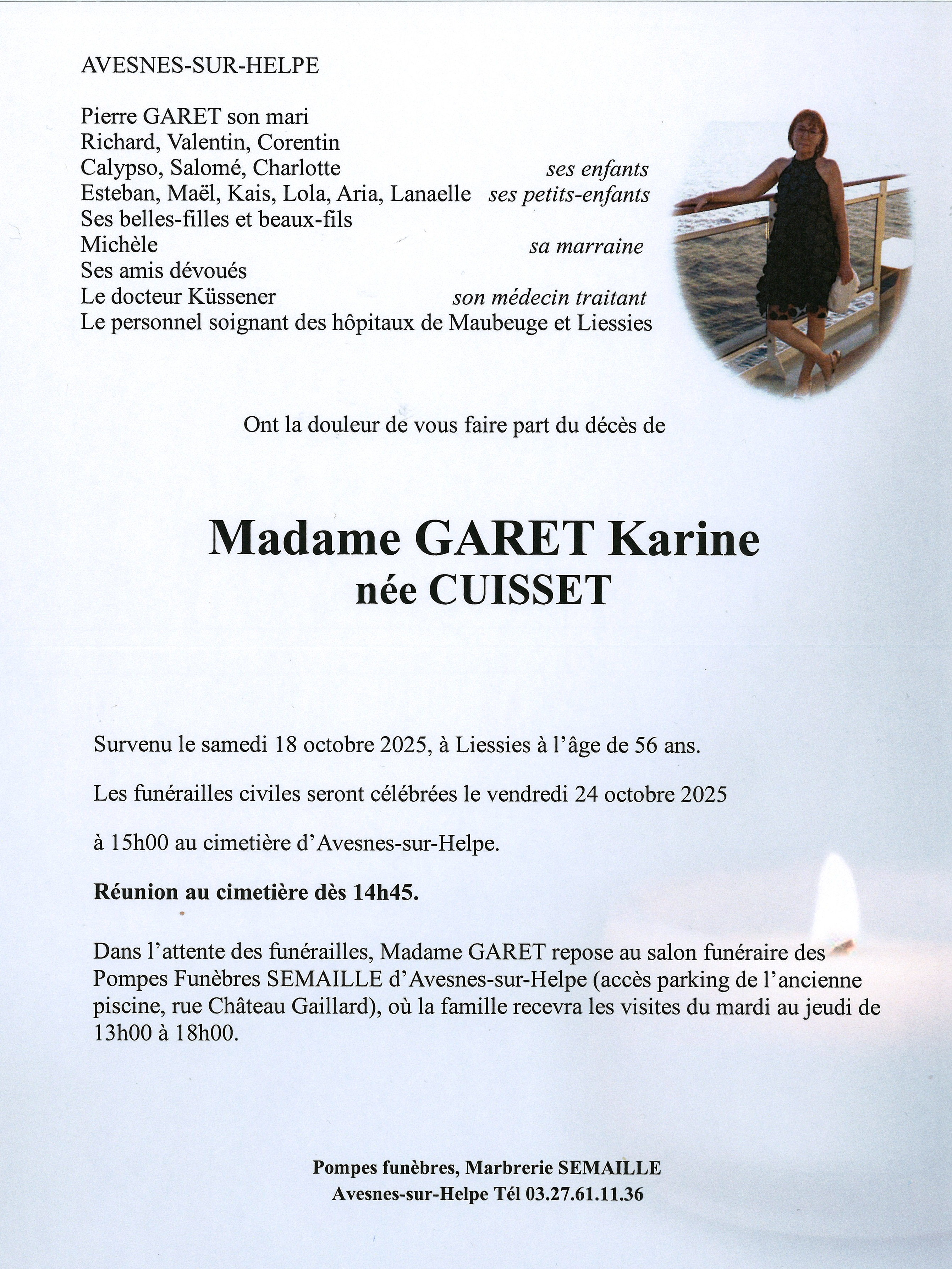 Avis de décès de Madame KARINE GARET