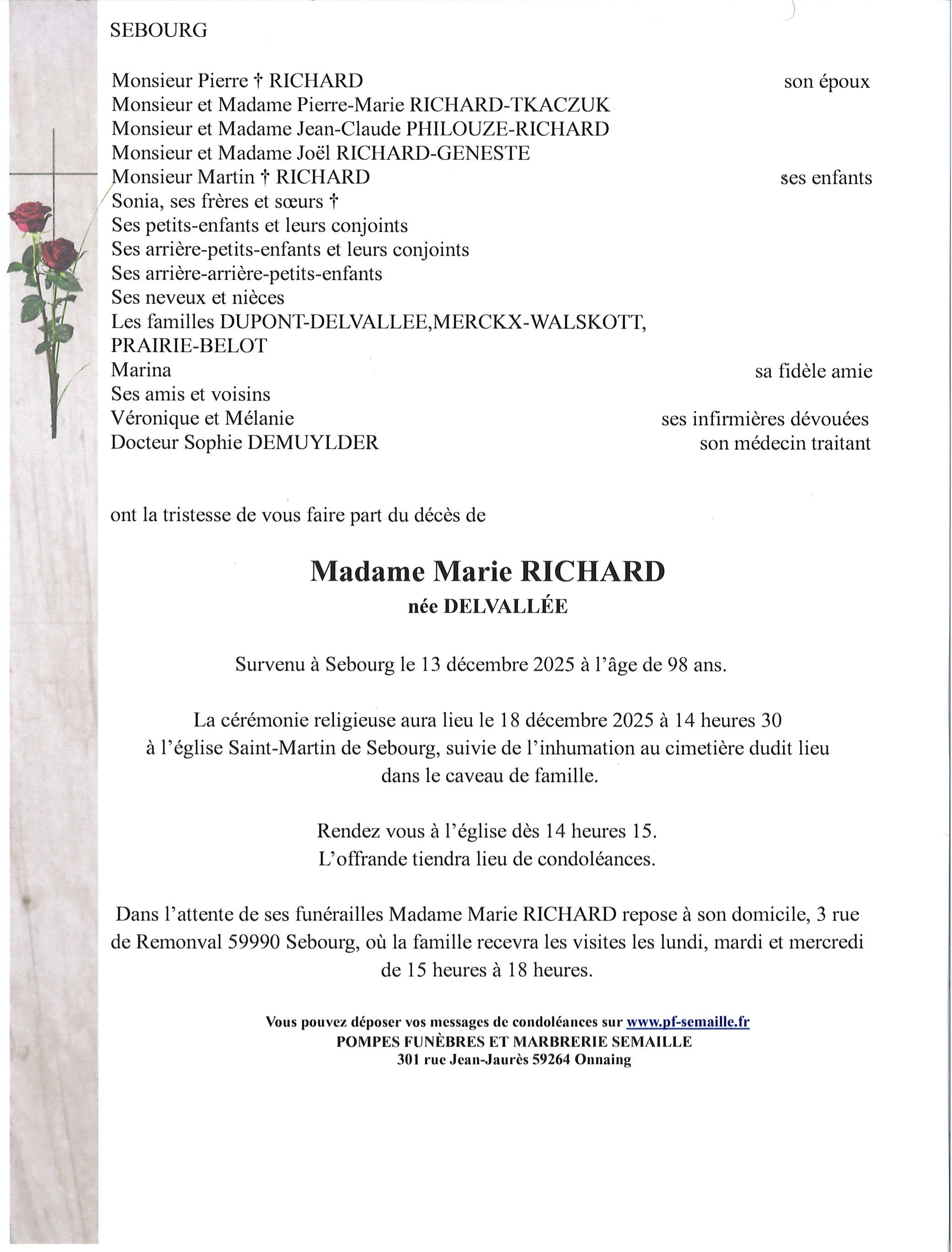 Avis de décès de Madame Marie RICHARD née DELVALLÉE