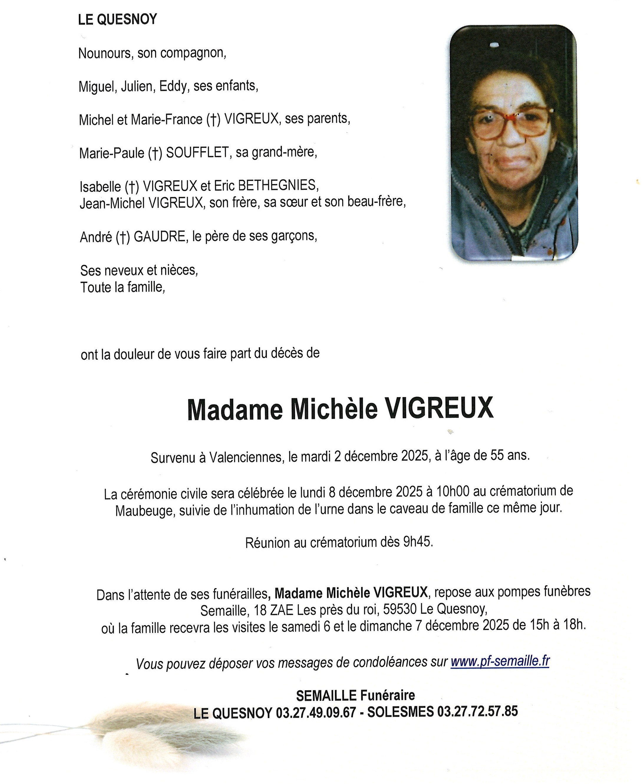 Déroulement des funérailles de Madame Michèle VIGREUX