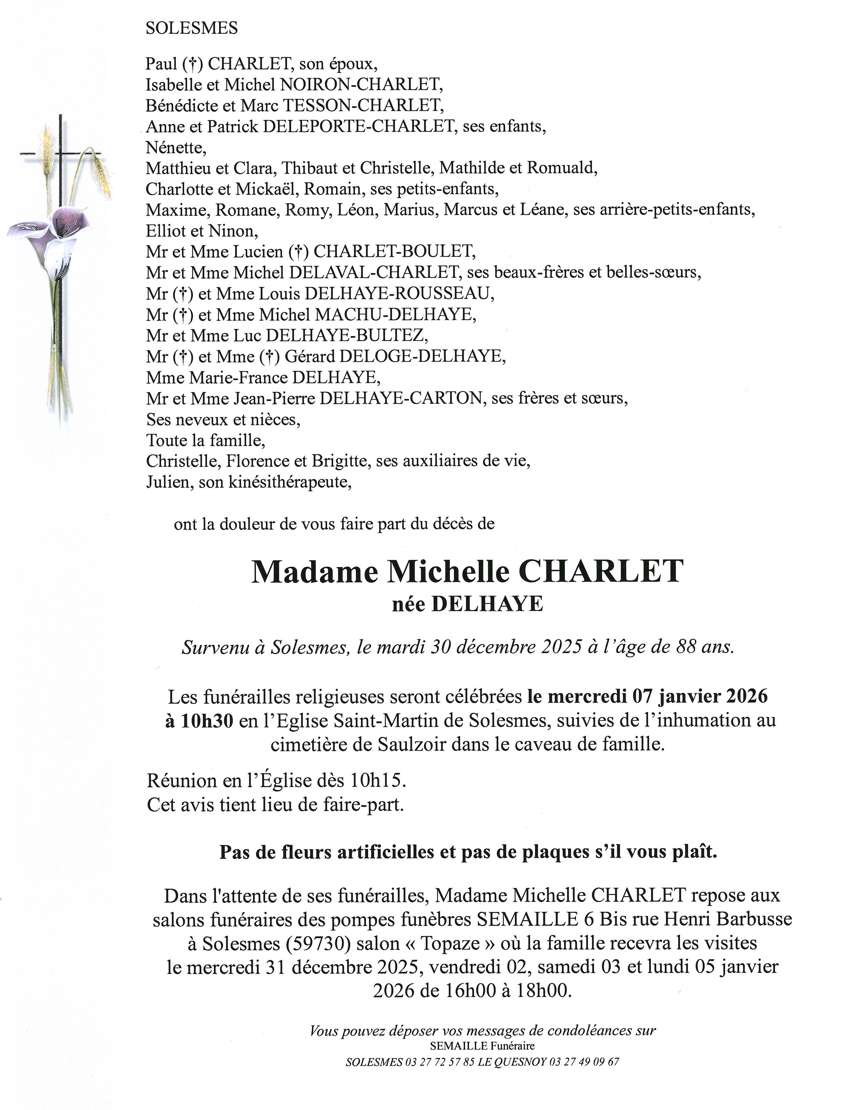 Cette page vous permet de présenter vos condoléances à la famille et de partager l'avis de décès de Michelle.