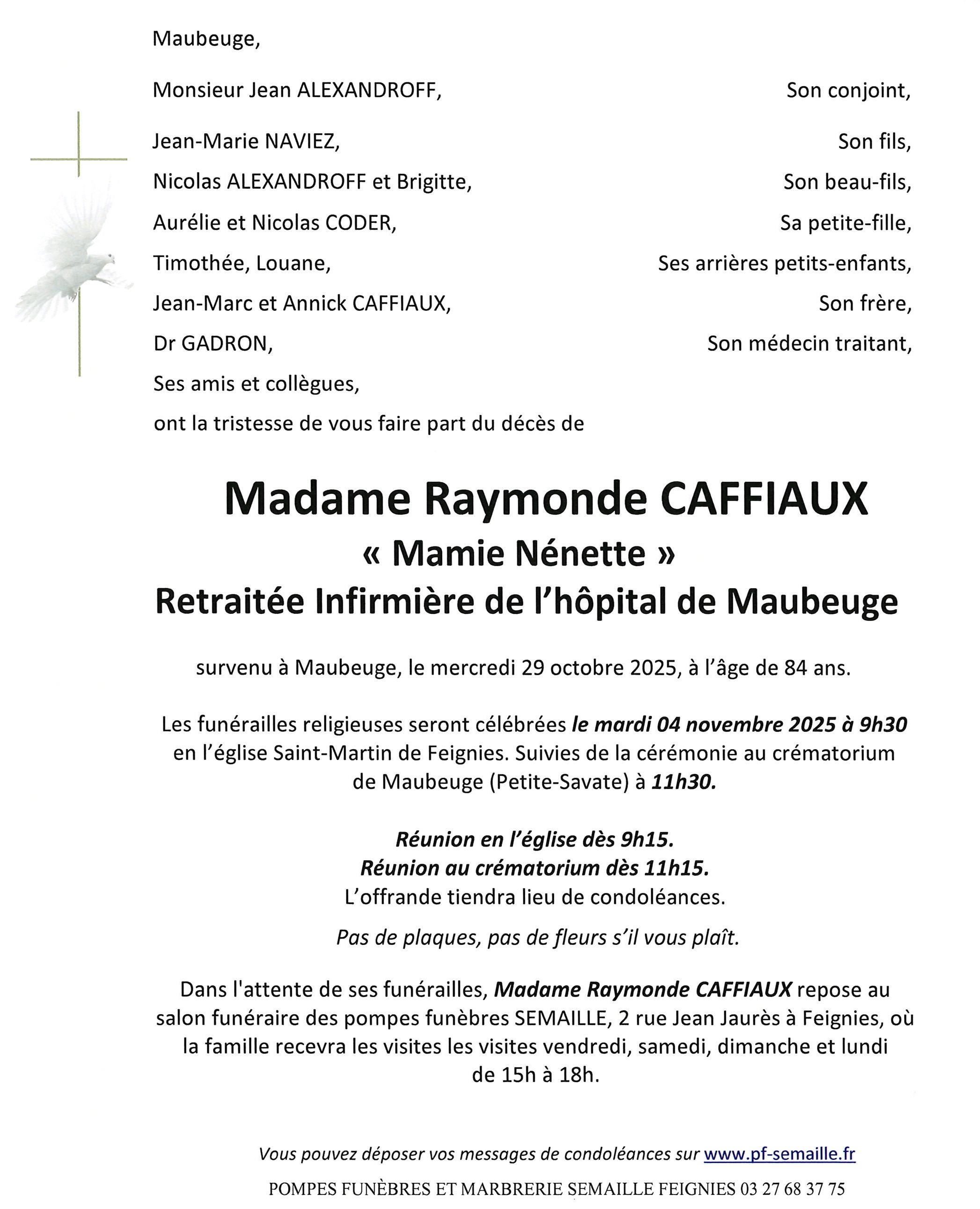 Déroulement des funérailles de Madame Raymonde CAFFIAUX