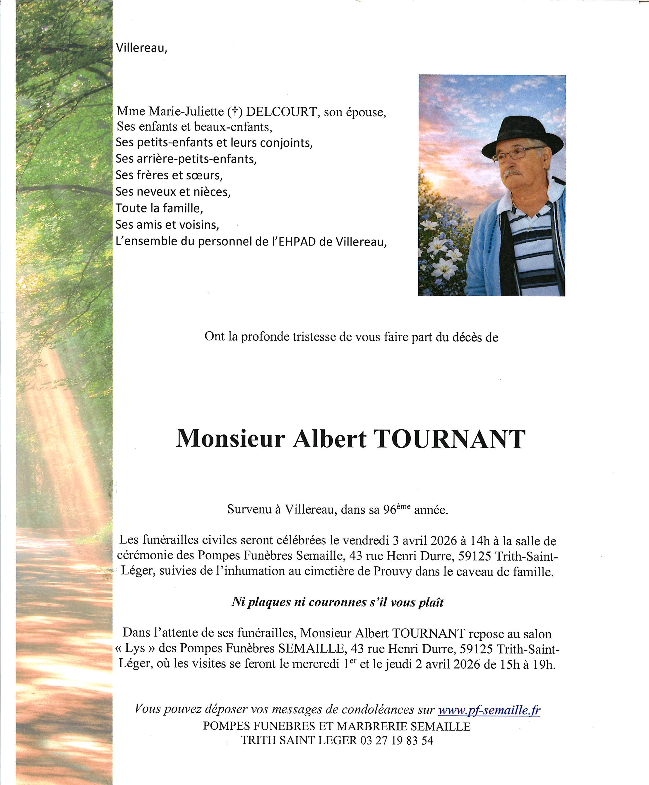 Cette page vous permet de présenter vos condoléances à la famille et de partager l'avis de décès de Albert.