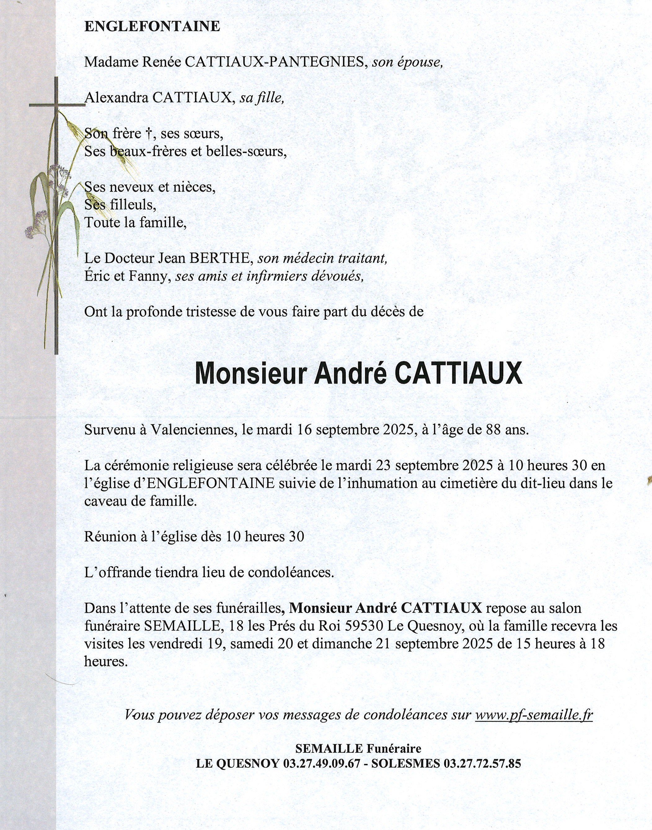 Déroulement des funérailles de Monsieur André CATTIAUX