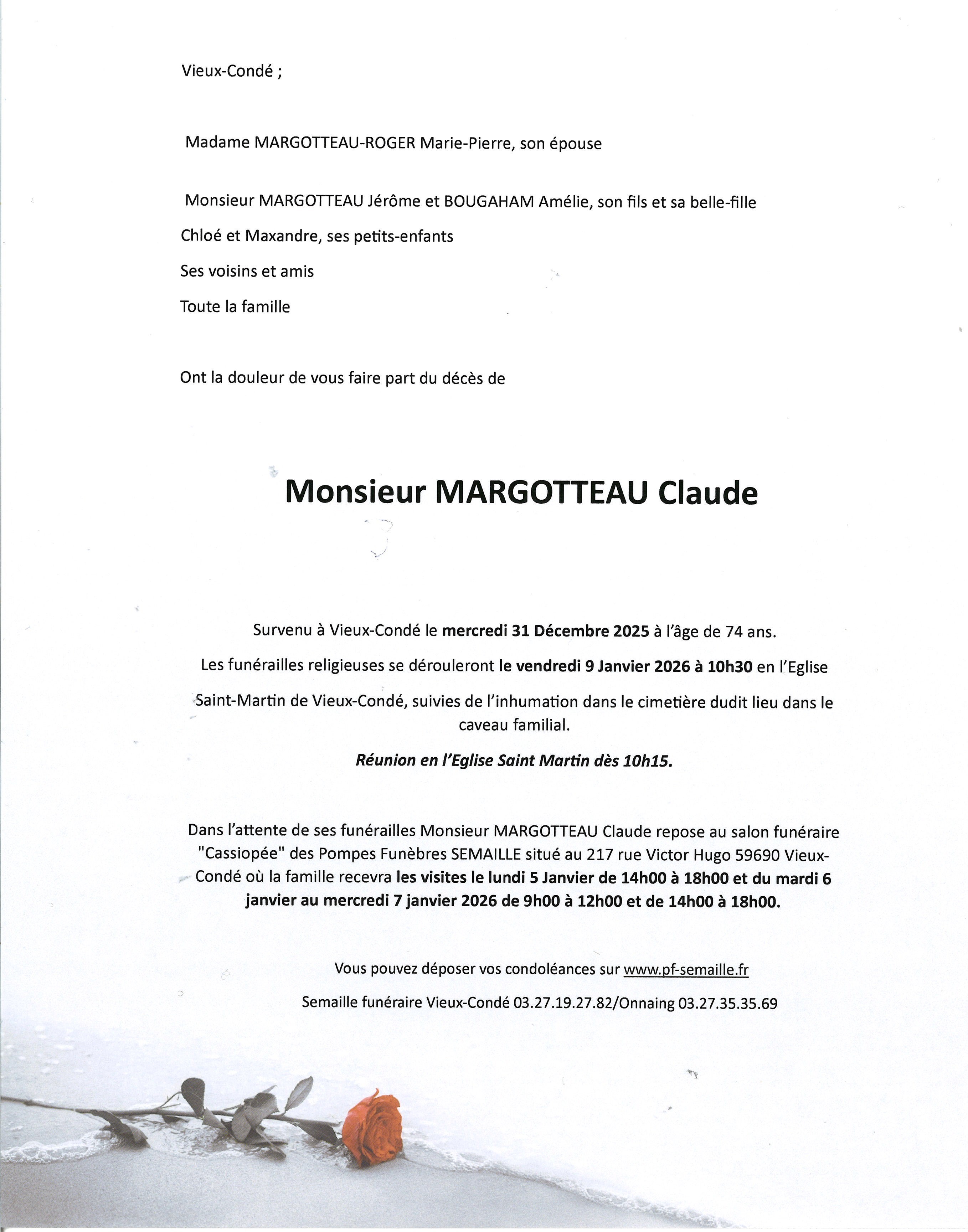 Avis de décès de Monsieur Claude MARGOTTEAU