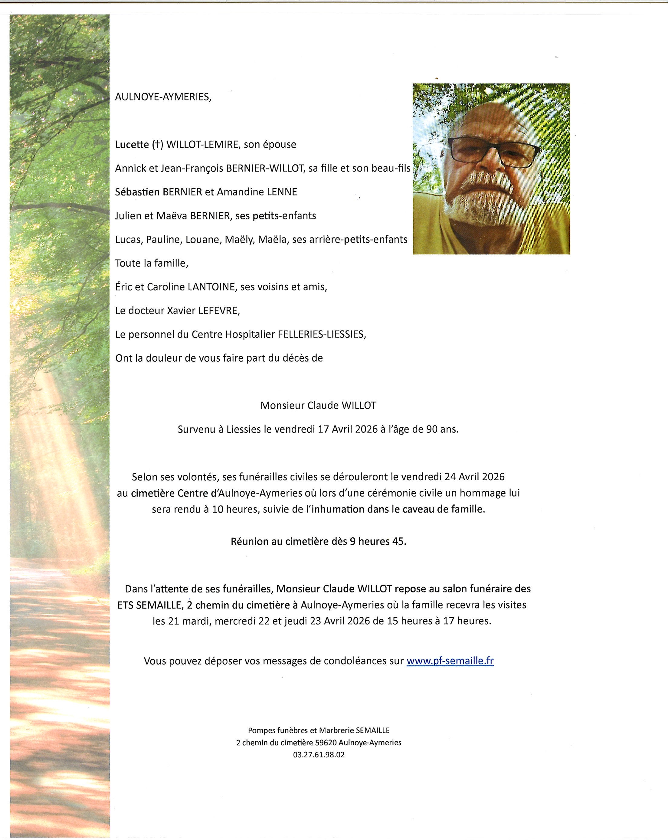 Déroulement des funérailles de Monsieur Claude WILLOT