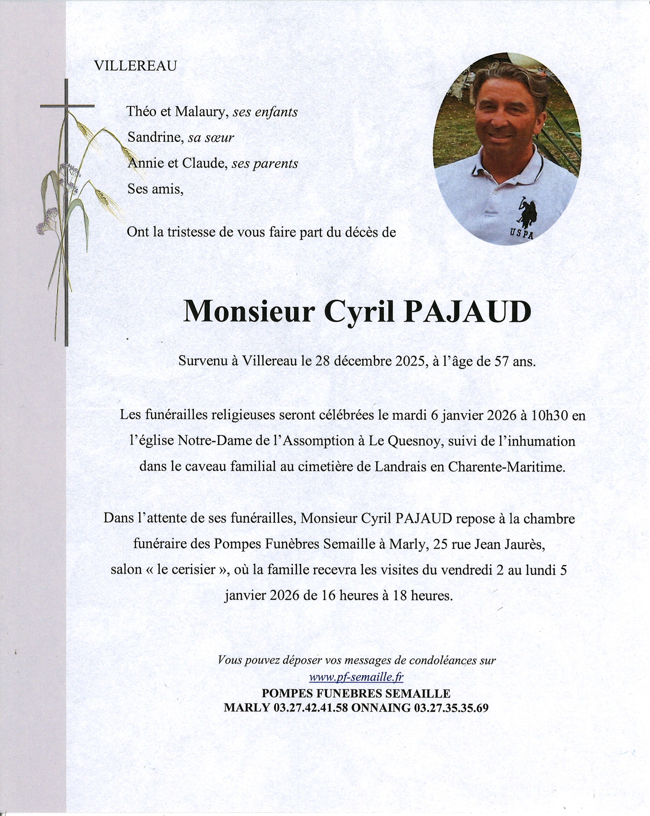 Déroulement des funérailles de Monsieur Cyril PAJAUD
