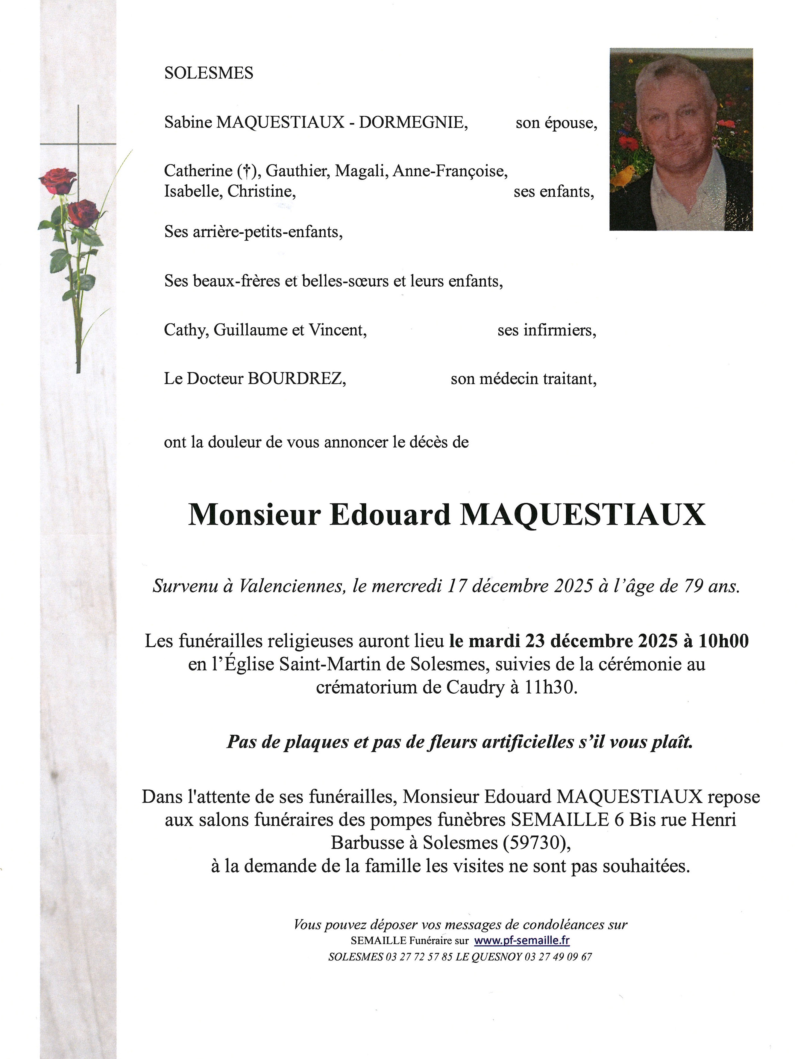 Avis de décès de Monsieur Edouard MAQUESTIAUX