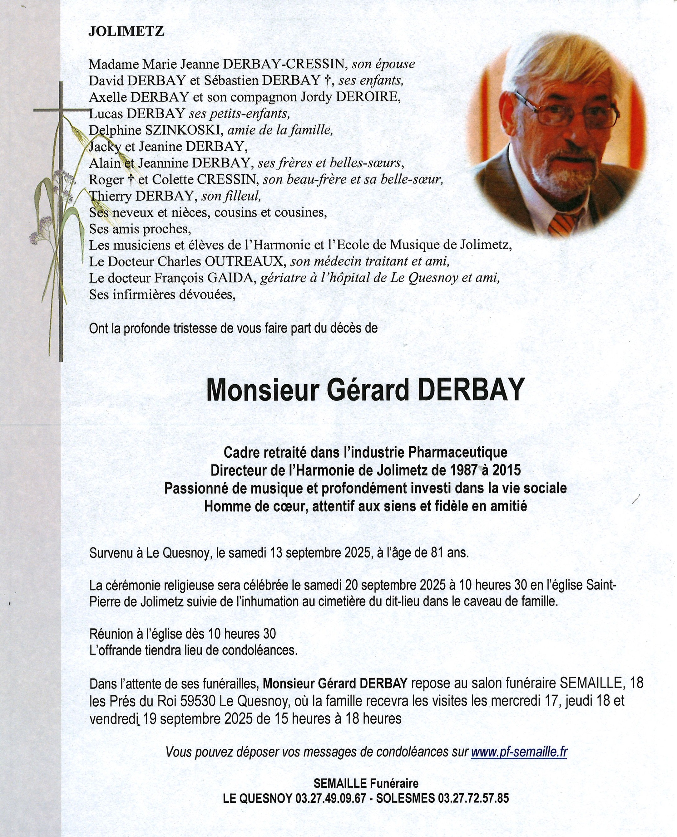 Déroulement des funérailles de Monsieur Gérard DERBAY