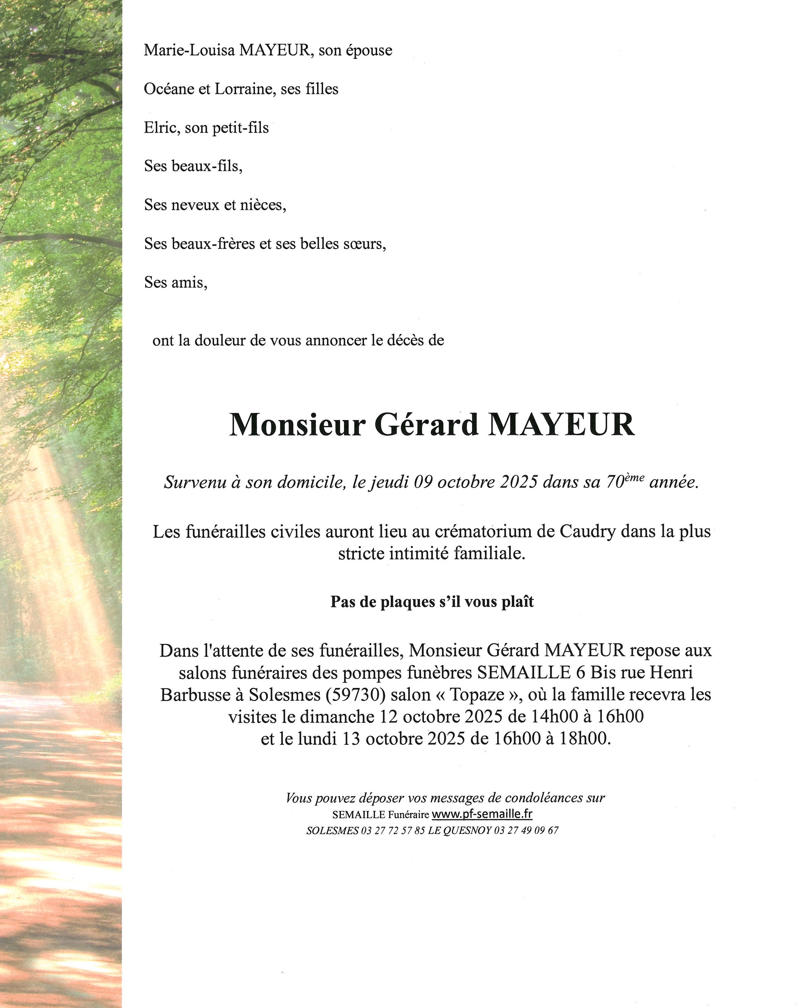 Cette page vous permet de présenter vos condoléances à la famille et de partager l'avis de décès de Gérard.