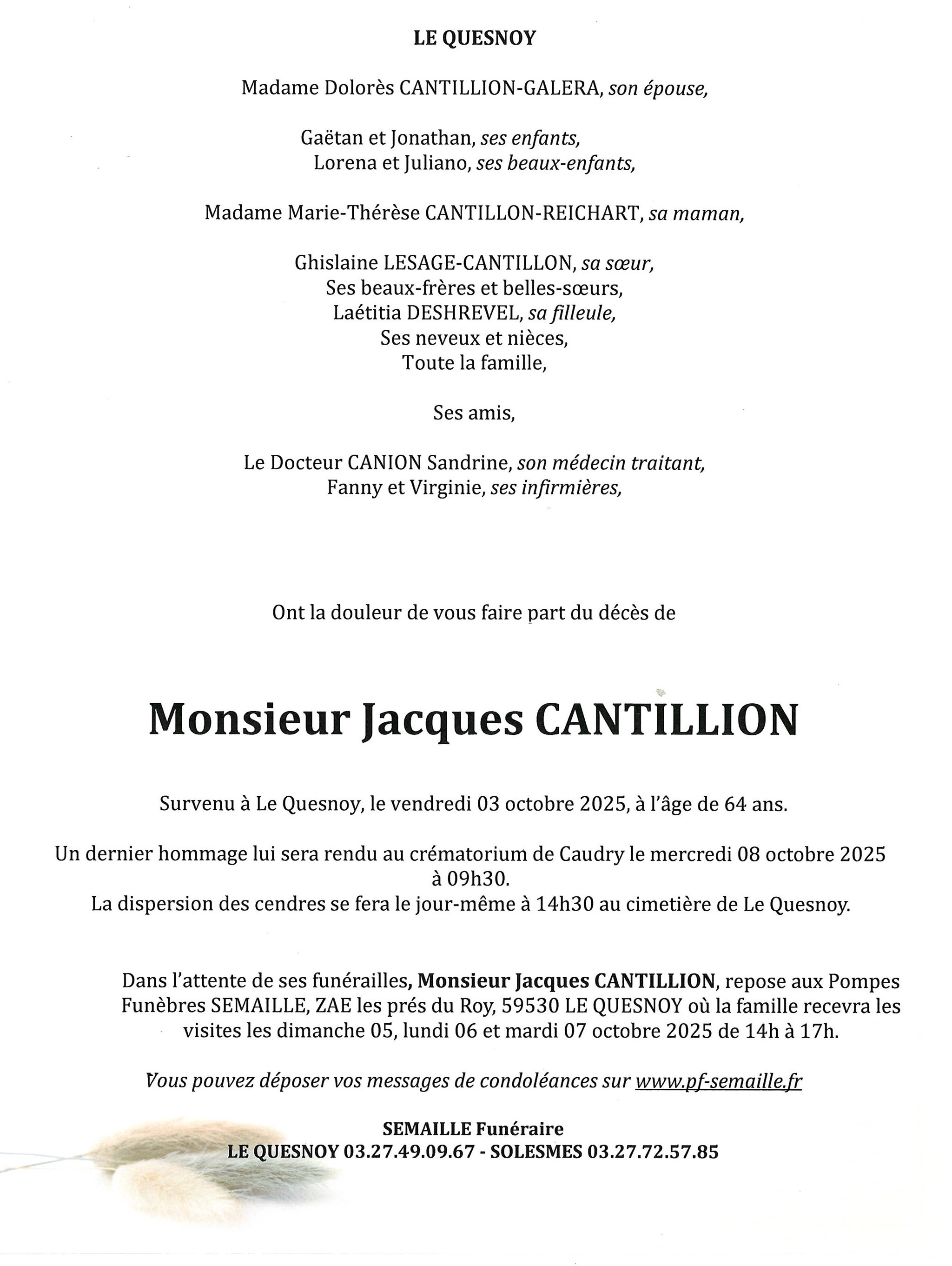 Déroulement des funérailles de Monsieur Jacques CANTILLION