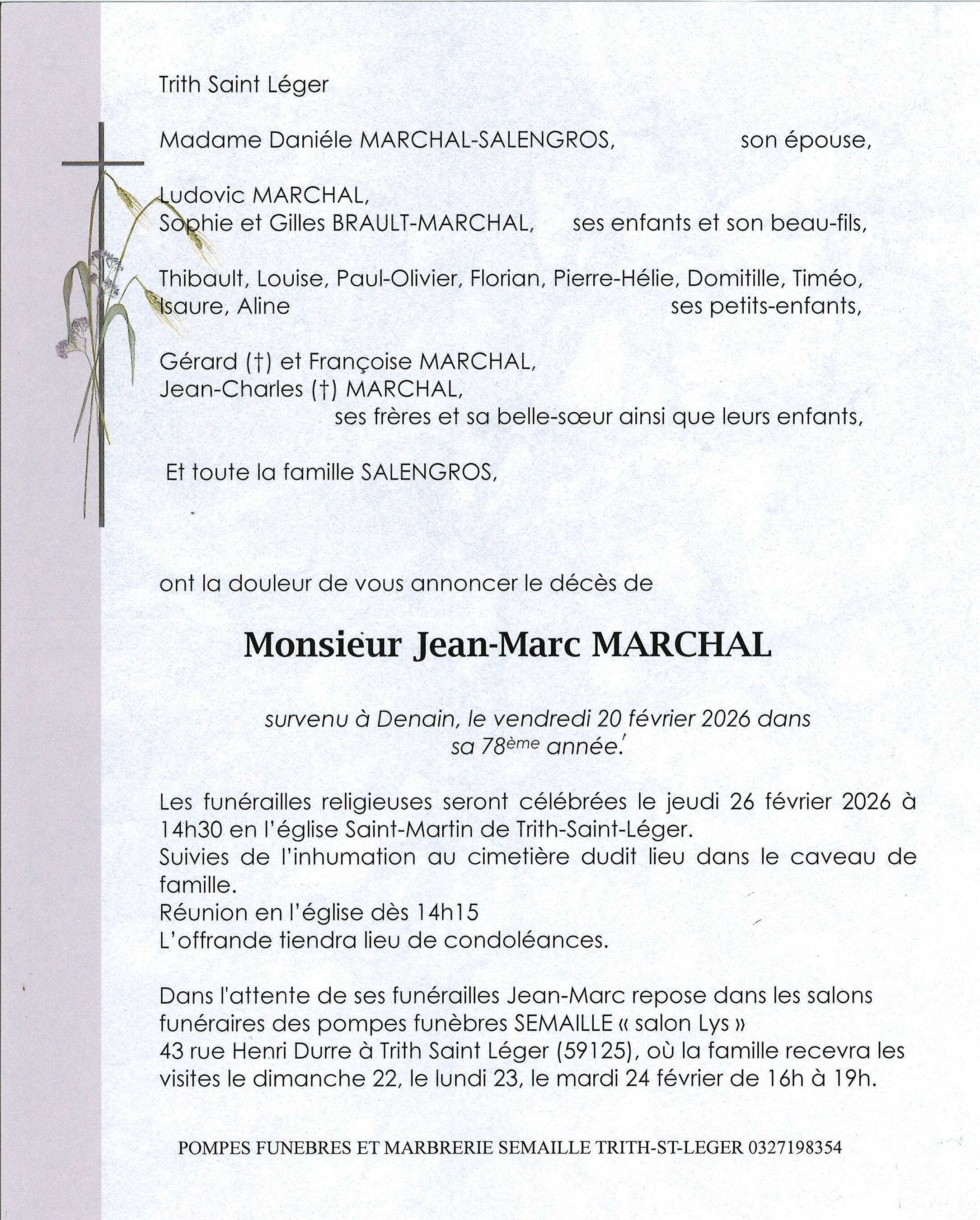 Déroulement des funérailles de Monsieur JEAN-MARC MARCHAL