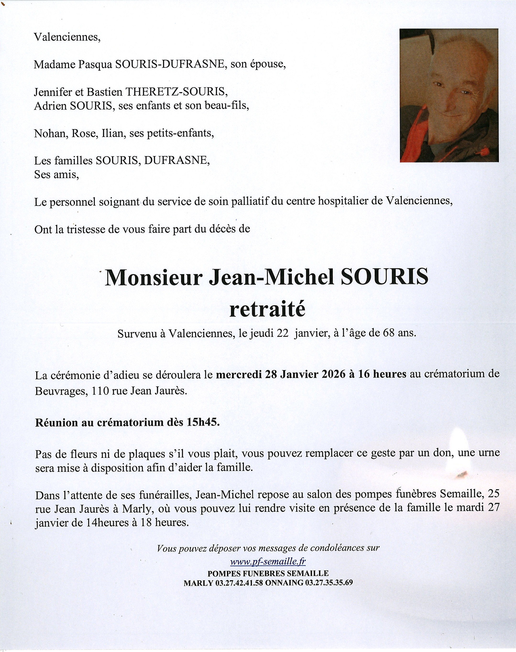 Avis de décès de Monsieur Jean-Michel SOURIS