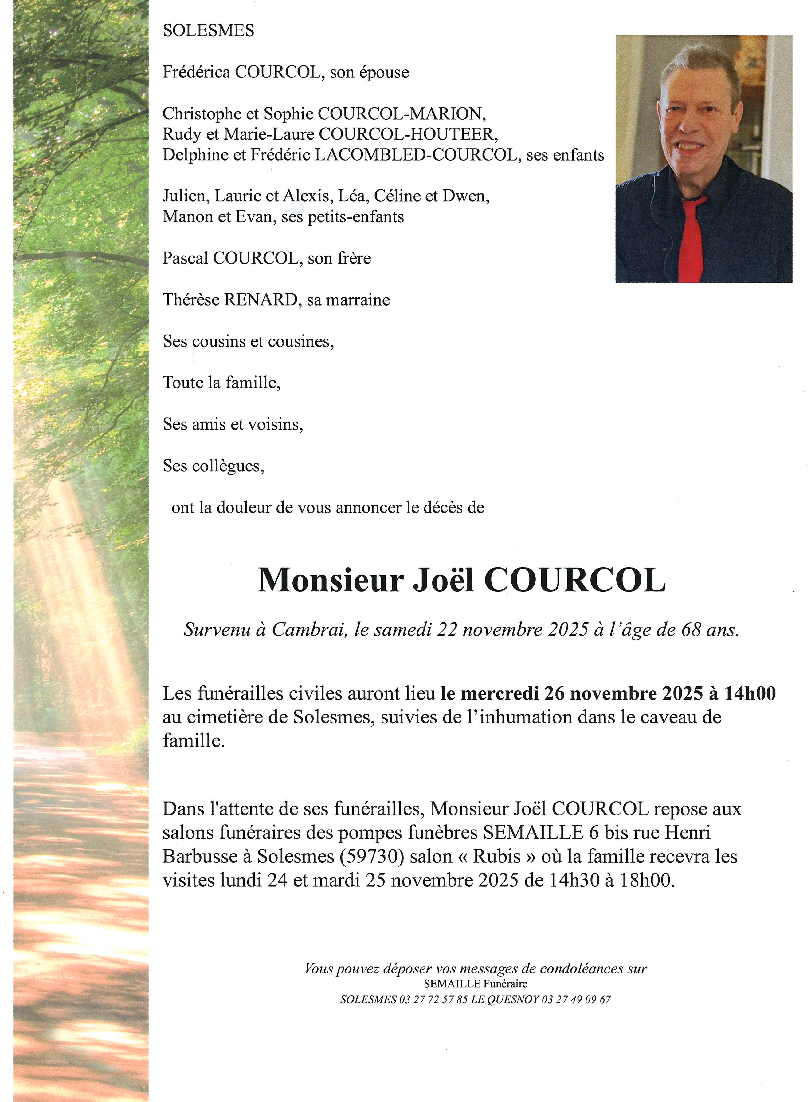 Déroulement des funérailles de Monsieur Joël COURCOL