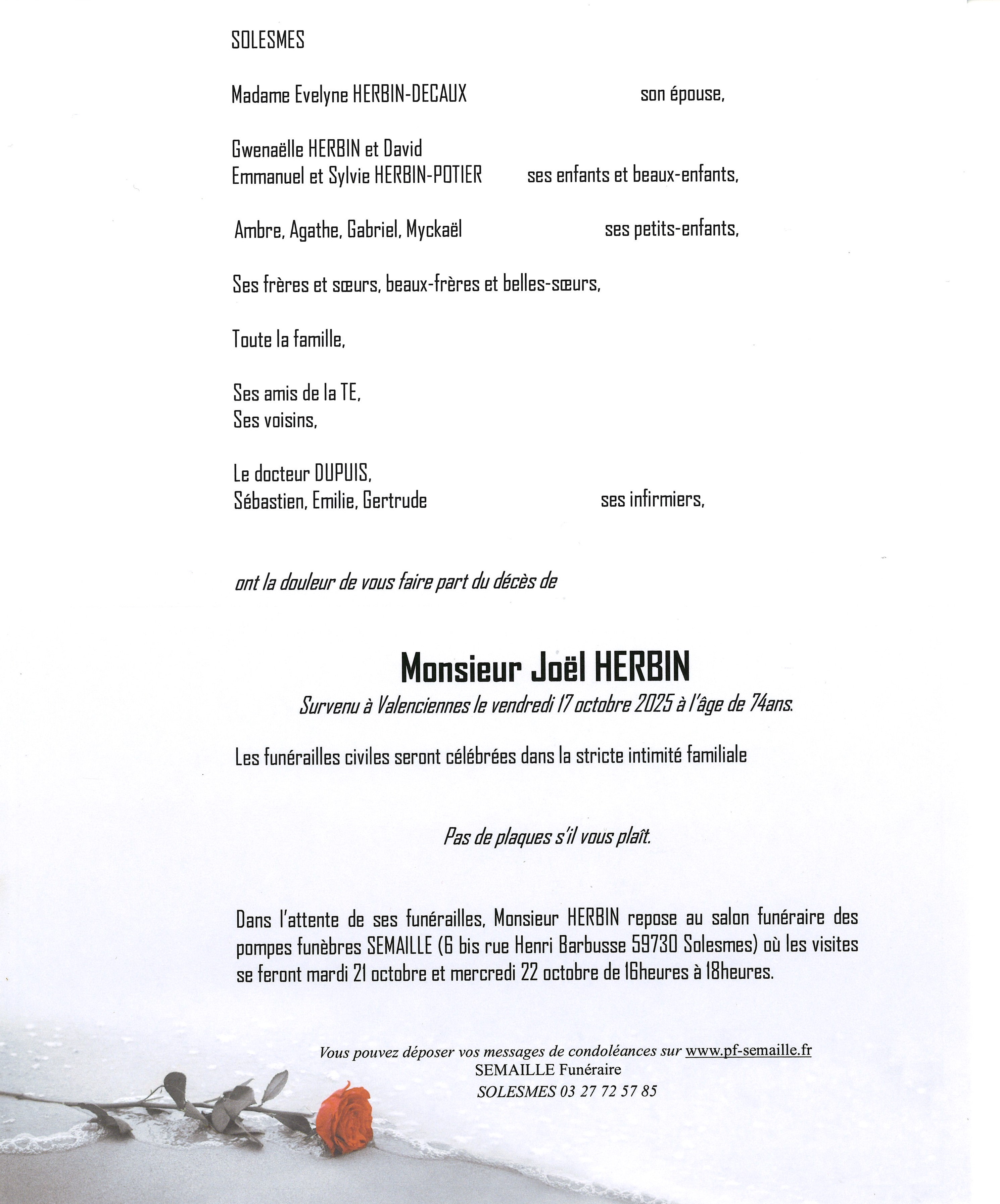 Déroulement des funérailles de Monsieur Joël HERBIN