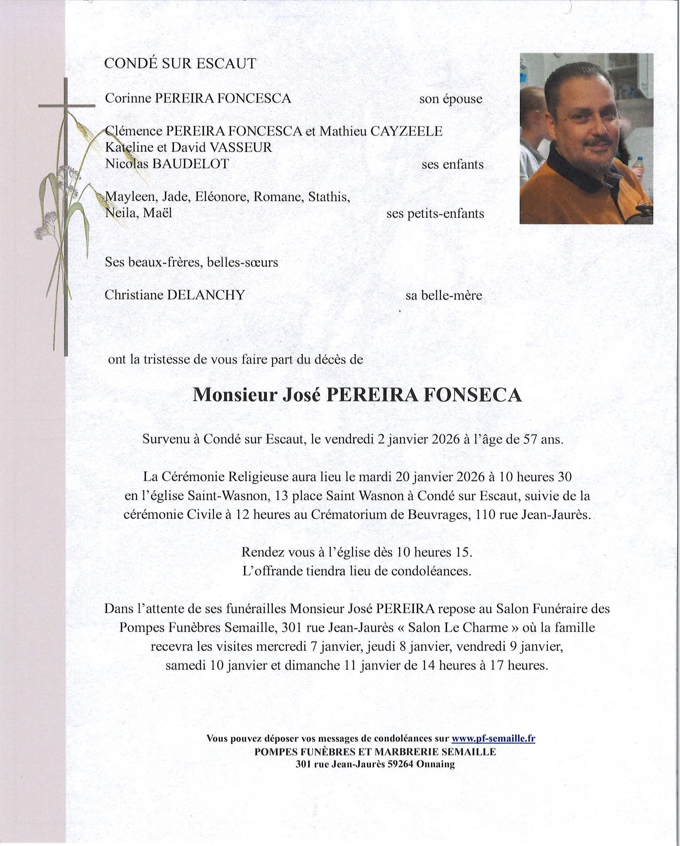 Avis de décès de Monsieur José PEREIRA FONSECA
