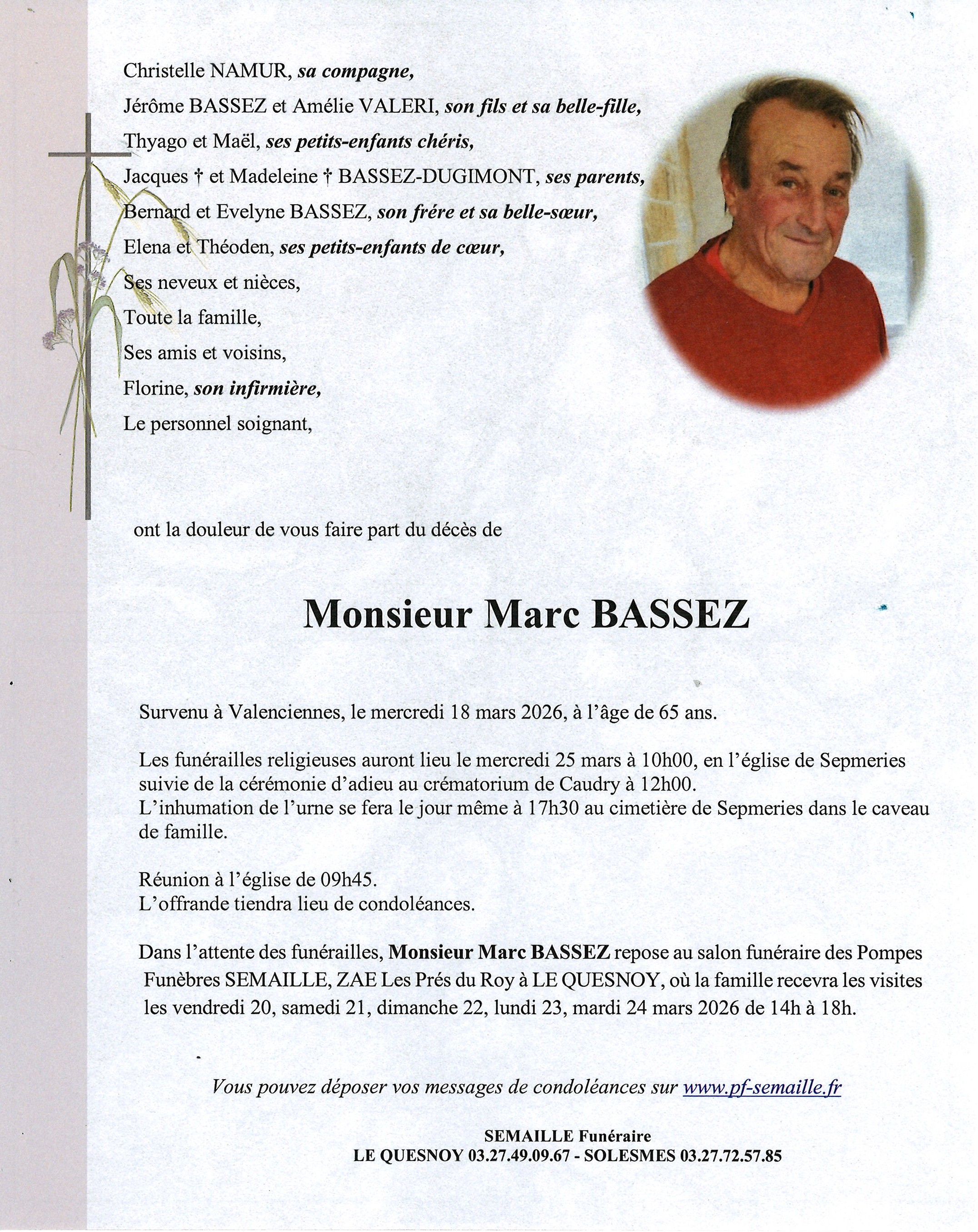 Avis de décès de Monsieur Marc BASSEZ
