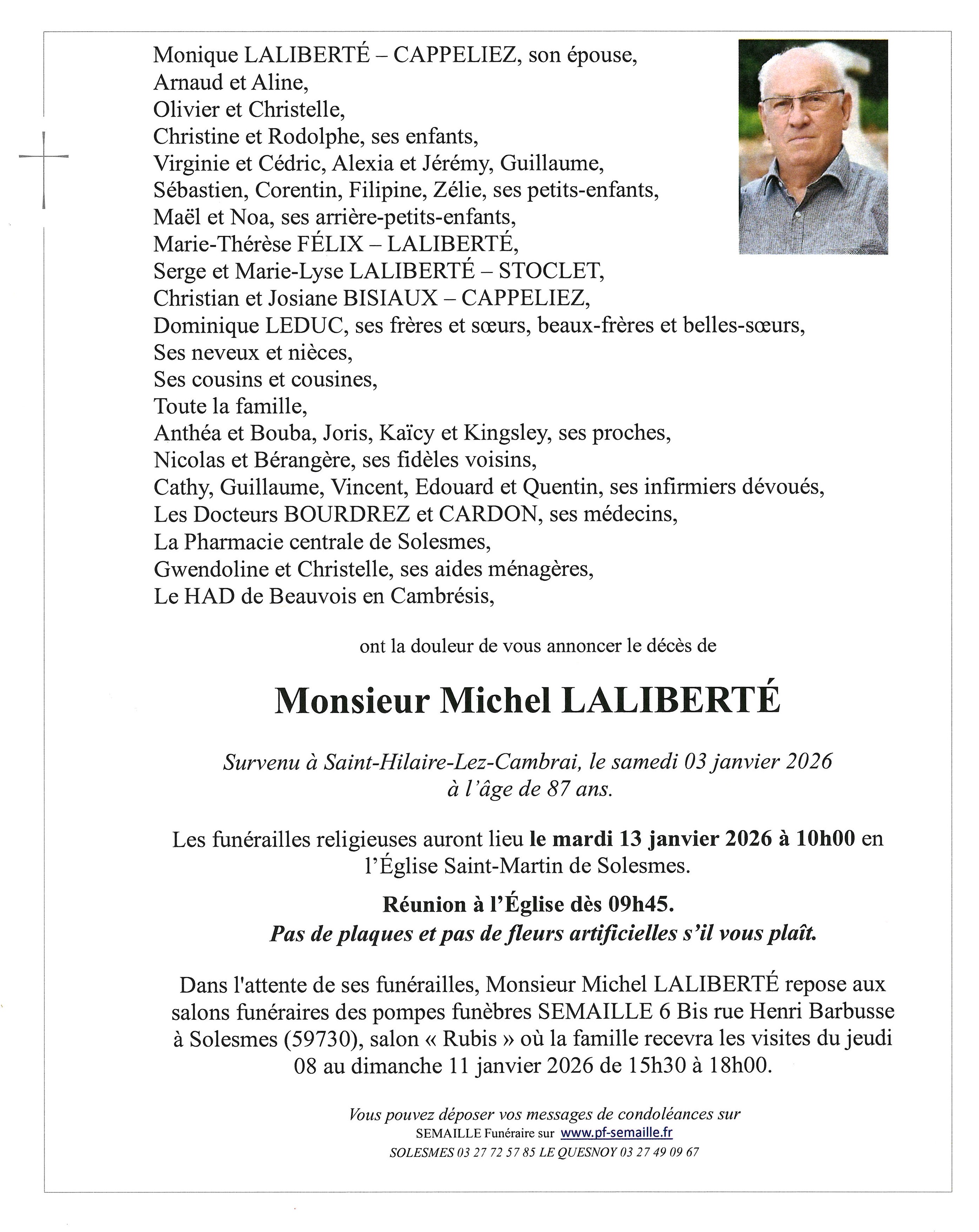 Avis de décès de Monsieur Michel LALIBERTE