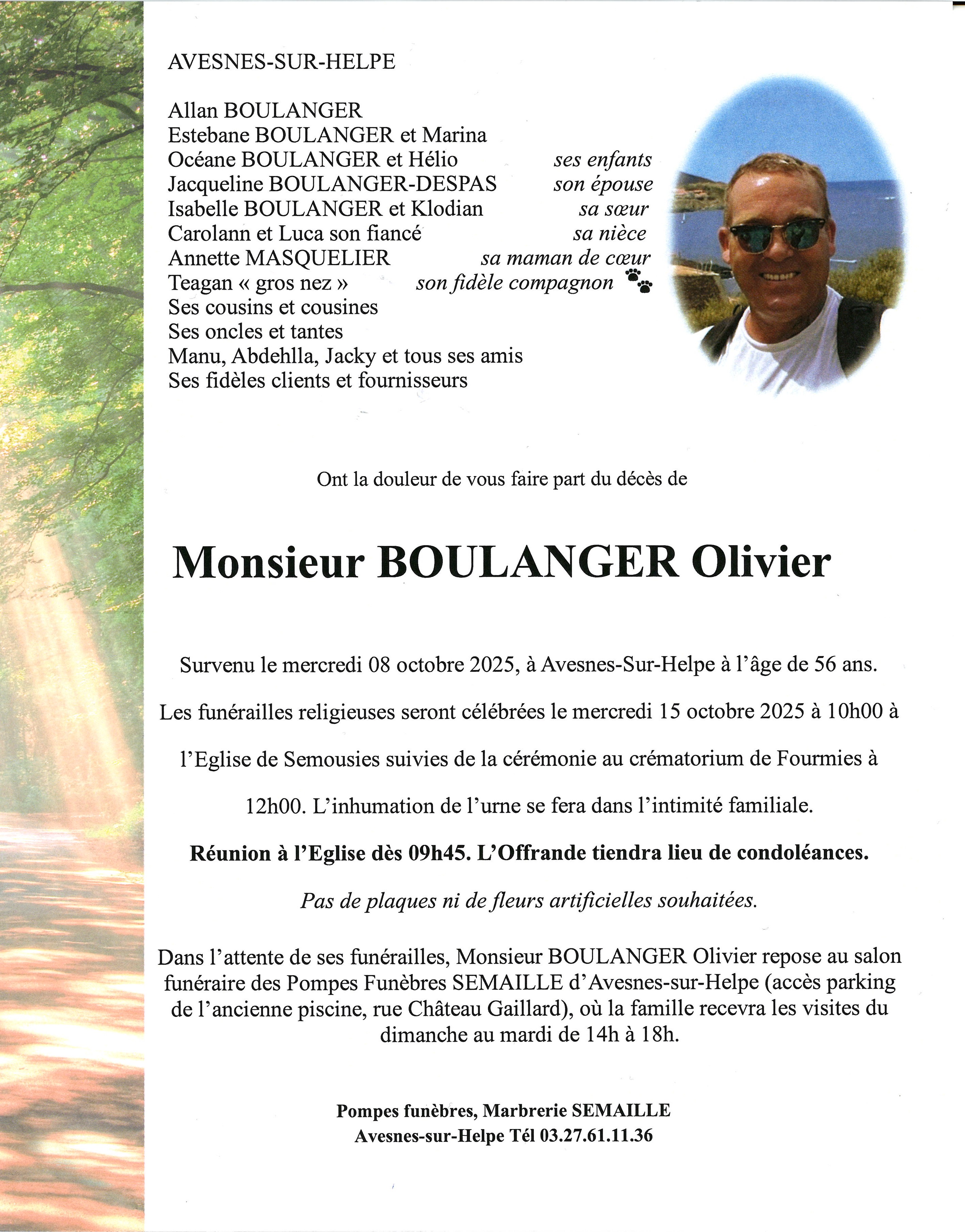 Avis de décès de Monsieur OLIVIER BOULANGER