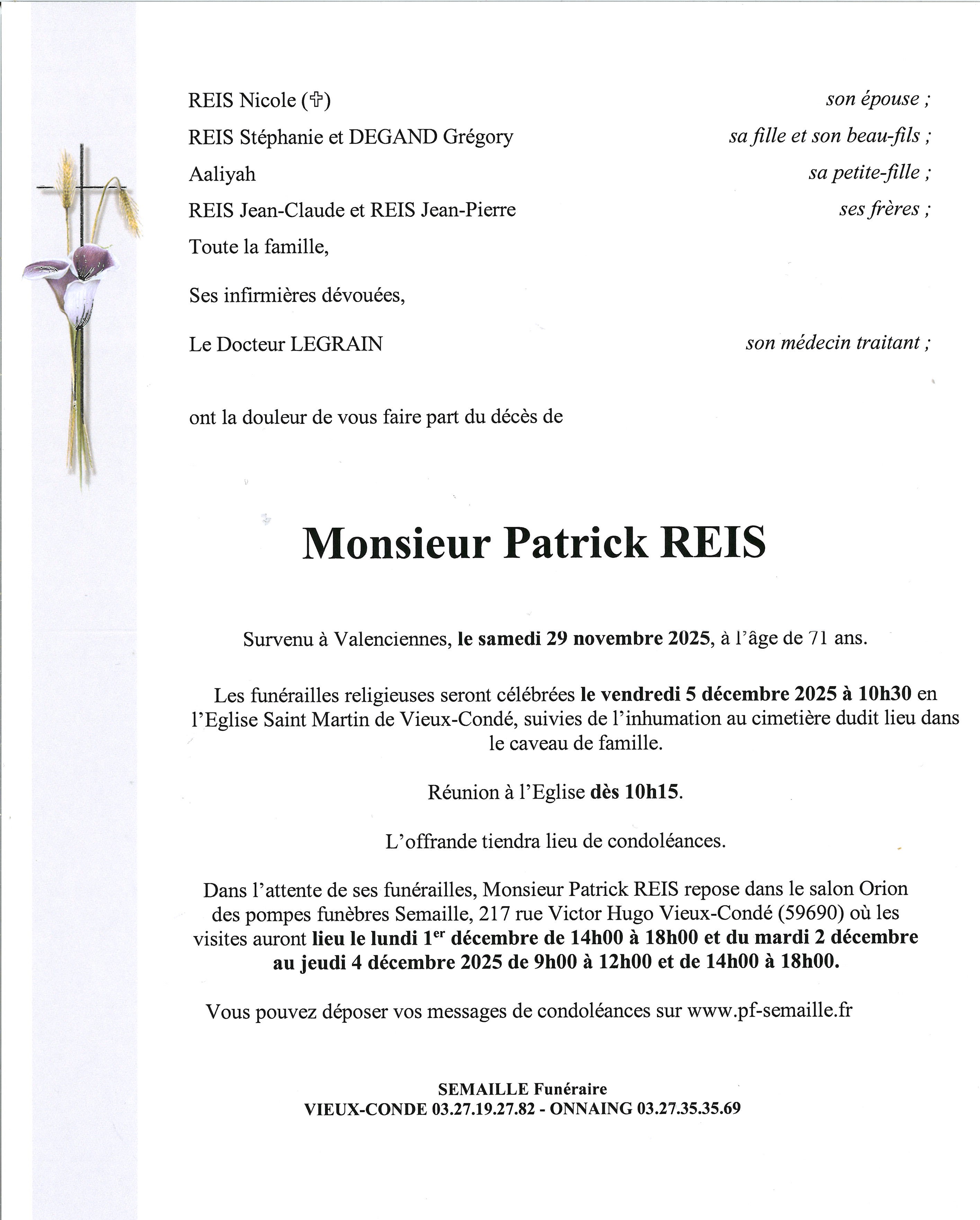 Cette page vous permet de présenter vos condoléances à la famille et de partager l'avis de décès de Patrick.