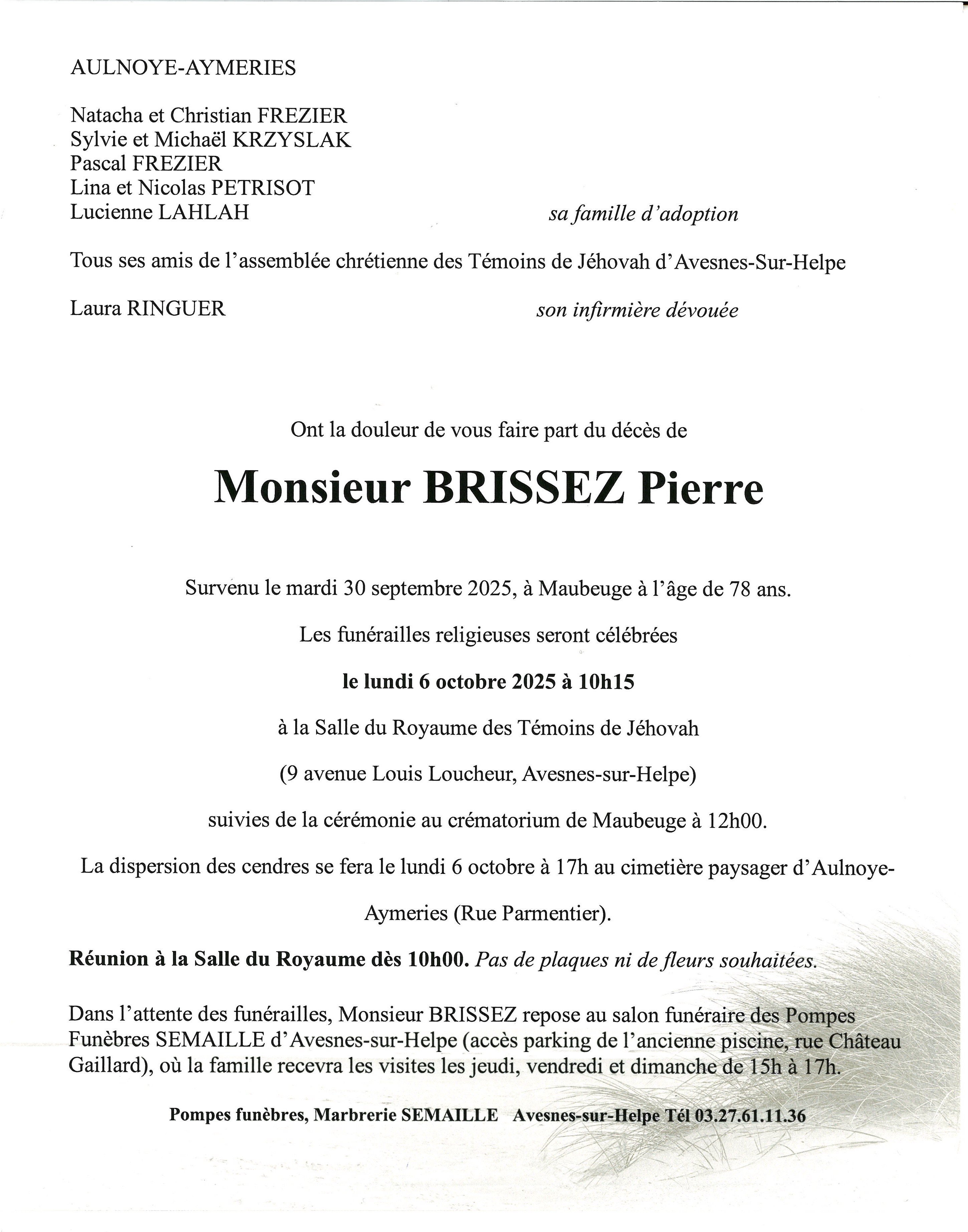 Avis de décès de Monsieur PIERRE BRISSEZ