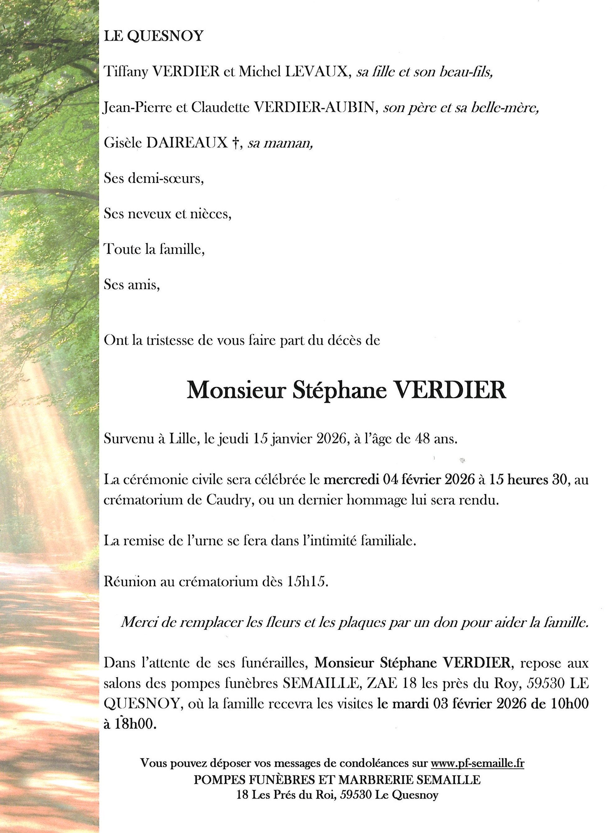 Avis de décès de Monsieur Stéphane VERDIER